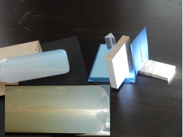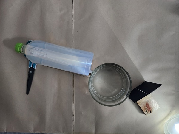 Hくんはプリズムの代わりにガラスコップを使って分光しました。